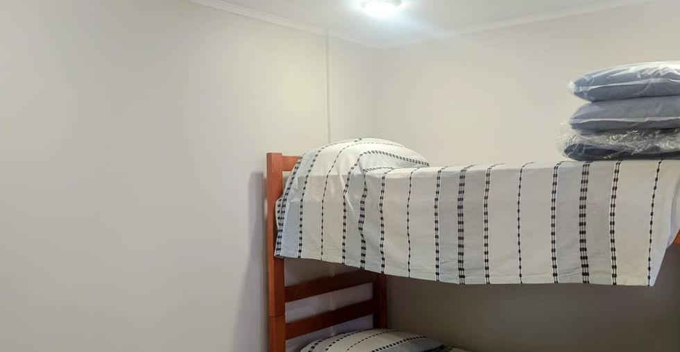 hacia un dormitorio con un camarote, más cama de una plaza.